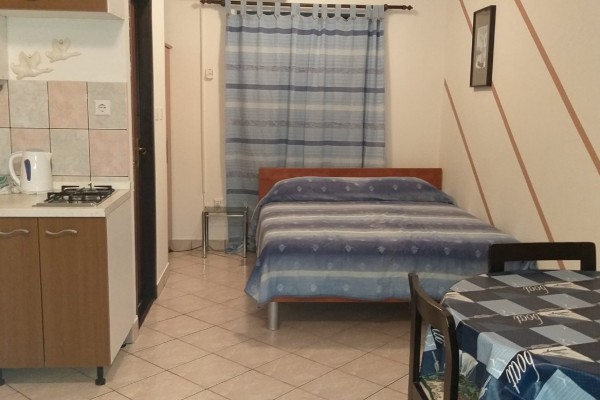 Studio apartman u prizemlju površine 30 m2, koji se nalazu u zgradi od ukupno 5 apartmana. Studio apartman se sastoji od kuhinje, dnevnog boravka, bračnog kreveta, kupaonice/wc, terase sa prekrasnim pogledom na more. Zgrada ima dvoriste ukupne površine 310m2, a pripadajući dio studio apartmanu iznosi 150m2. Dvoriste se sastoji od parkirnih mjesta, velike pecenjare sa terasom. Dvoriste obiluje zelenilom i ima puno hlada i maslinik od 13 maslina. Veliki dio dvorista je u kamenu. Do mora i plaze ima manje od 200m. Ulica u kojoj se objekt nalazi je mirna i nema prometa, bez buke i uz osiguranu privatnost. Vlasnistvo je uredno 1/1,nema tereta te ima sve potrebne dozvole. Apartman ima svoju terasu i poseban ulaz. Prekrasan pogled na more, blizina svih sadržaja, trgovine, lijekarne, ambulante, banke, nacionalni park itd. Idealno za stanovanje i iznajmljivanje.